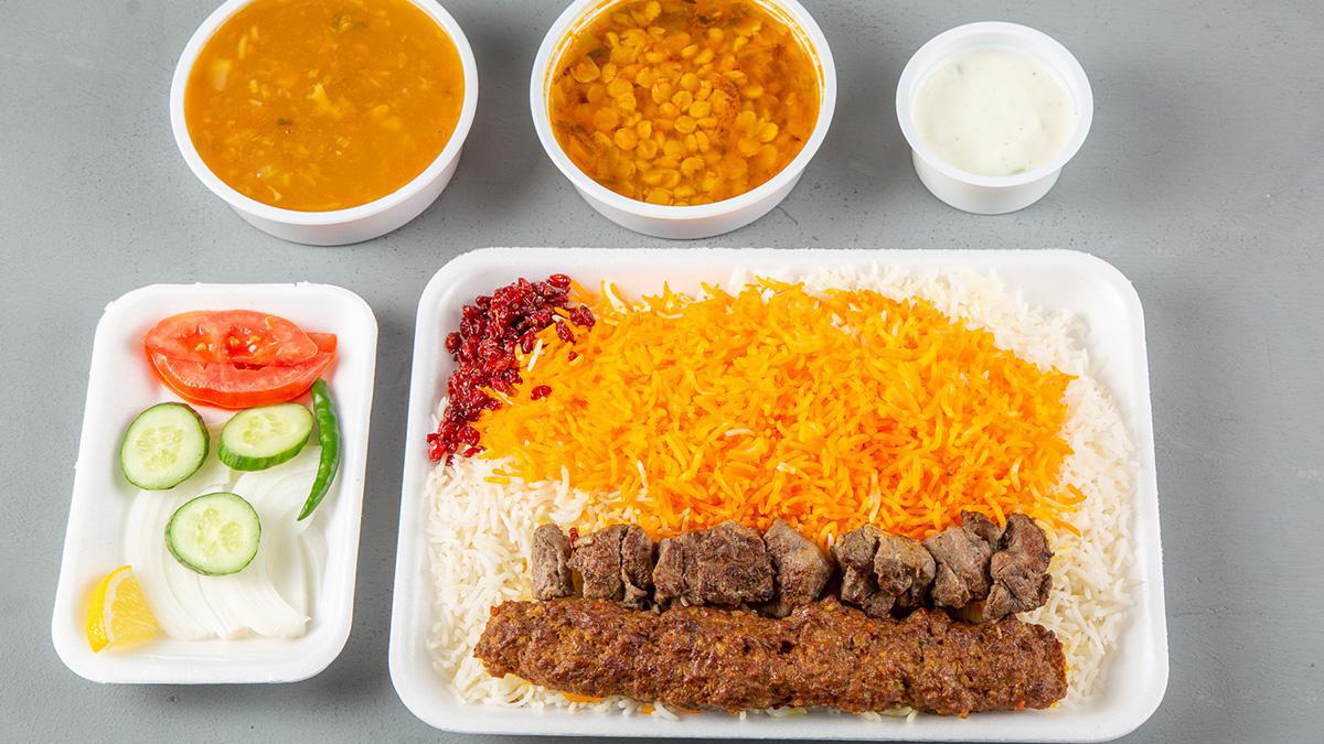 غير شامل الضريبة مع أرز، سلطة صغيرة، شوربة، حمص دال و زبادي