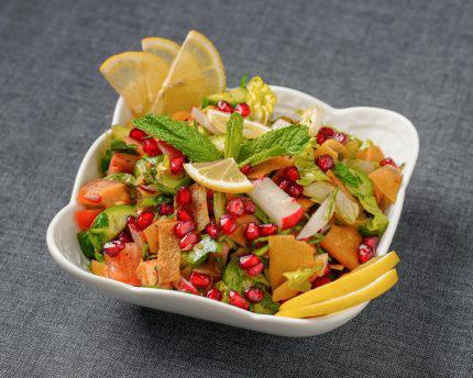 Made with fresh vegetables, herbs and toasted pita bread. Our Fattoush salad is made with crisp lettuce, tomatoes, cucumbers, onions, parsley and mint, making it a perfect side dish or a satisfying light meal.